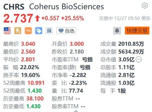 格隆汇12月27日|好意思国药企Coherus BioSciences(CHRS.US)大涨25.55%,报2.737好意思元。音信面上,CHRS于周二好意思股盘后晓示好意思国食物药品监督责罚局(FDA)批准了其UDENYCA ONBODY家具。UDENYCA ONBODY是该公司推出的UDENYCA(pegfilgrastim-cbqv)的体内打针器,UDENYCA是一种pegfilgrastim生物仿制药,在化疗后的第二天给药,旨在裁汰感染风险。